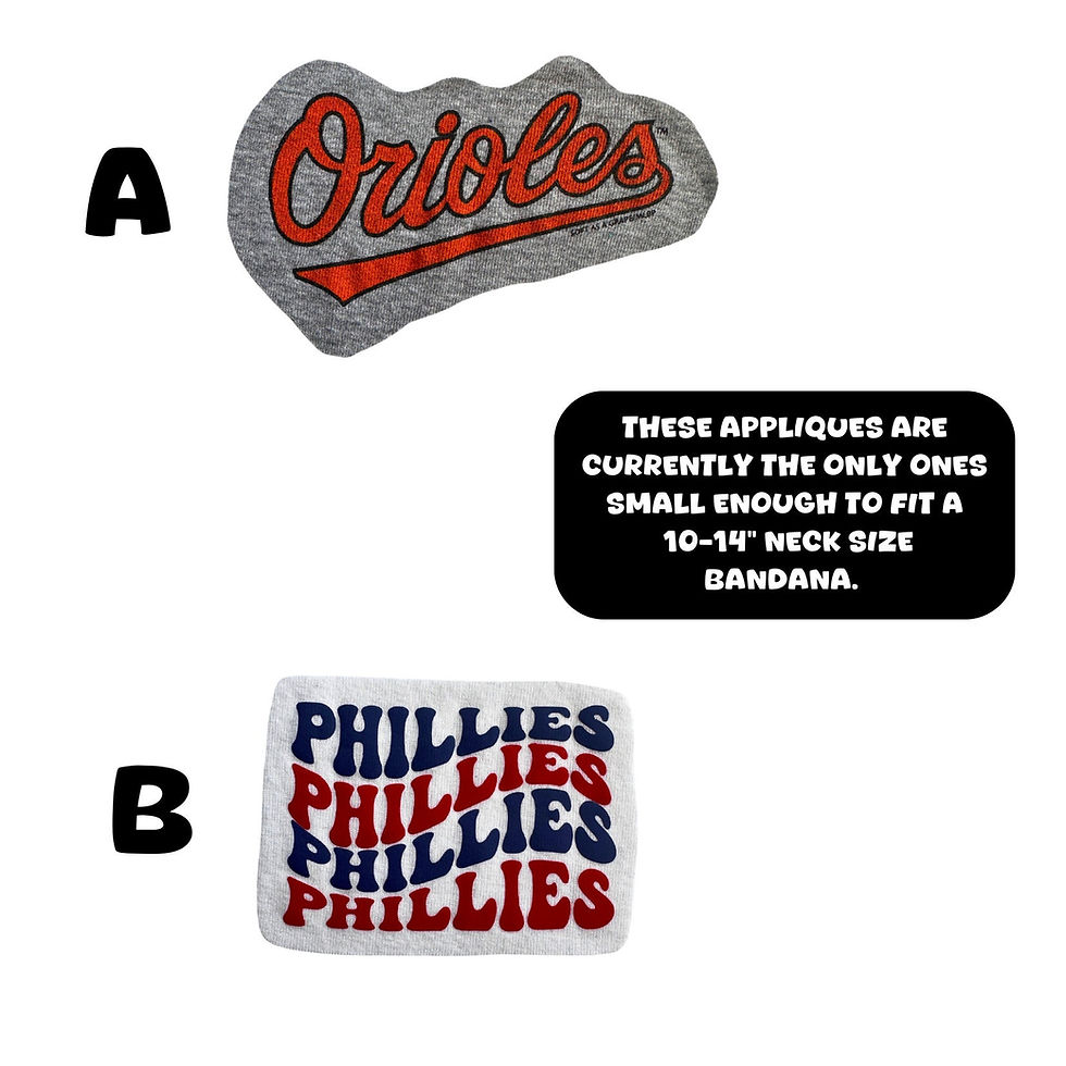No trademark infringement is intended. All appliques were purchased second-hand or donated to me. The original garments have been cleaned and altered, and portions have been used to make my one-of-a-kind bandanas. I LOVE making these customs. Send me a message if you have an idea for one. I'd love to help you bring it to life!